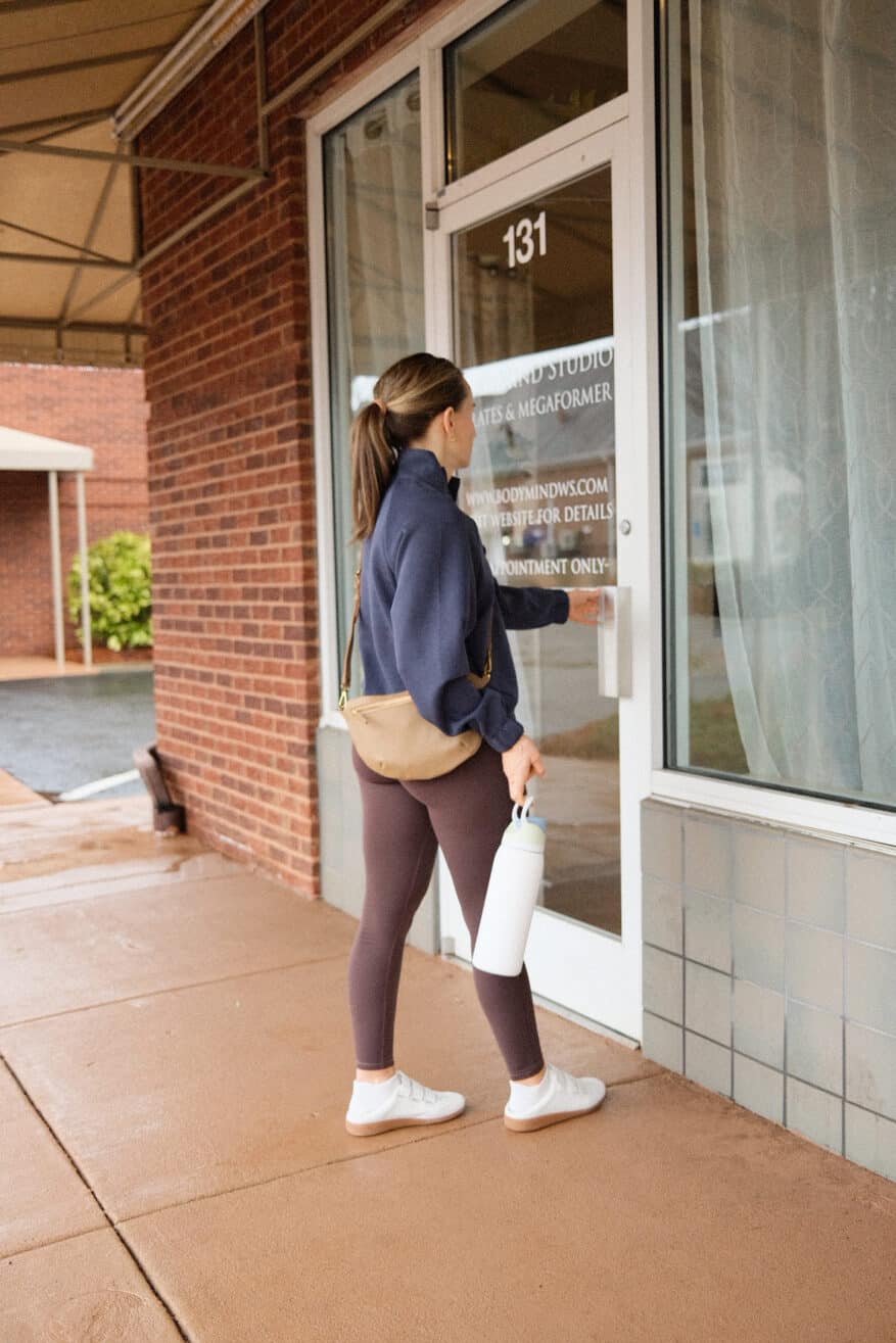 Pilates is no joke, and I wish I had not waited so long to try it. The right outfit genuinely makes a difference in how focused and comfortable you feel in class. Start with one good set, grab your grip socks, and just show up. If you are local to Winston-Salem, BodyMind Studio is where I go and they are absolutely the best.
